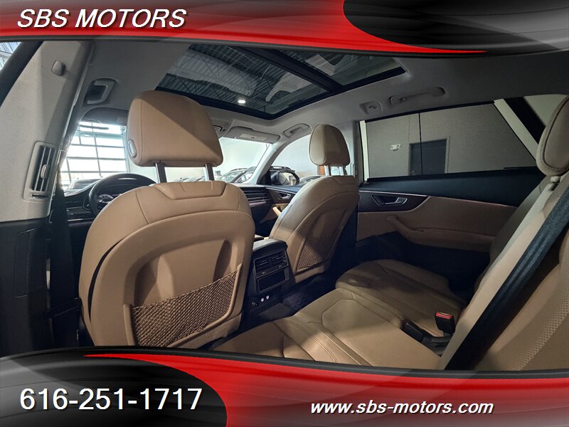 The 2019 Audi Q8 Prestige 55 TFSI is the ultimate SUV, combining fun with everyday versatility. Enjoy its turbocharged V6 engine, legendary quattro all-wheel drive, panoramic sunroof, heated and ventilated front seats, ambient lighting, premium speakers, and more. This Audi Q8 is built for drivers who want luxury, space, and presence in one sophisticated. Extremely clean inside and out, only 2 previous owners, CLEAN CarFax, and ready for you to be behind the wheel.